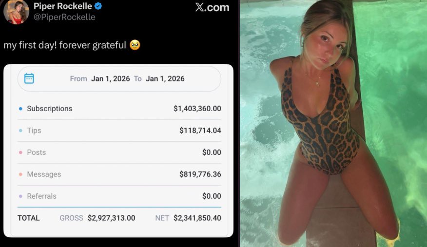 Piper Rockelle OnlyFans começou 2026 em grande estilo: a influenciadora afirmou ter faturado US$ 2,9 milhões no primeiro dia após lançar sua conta na plataforma de assinaturas OnlyFans. (people.com)