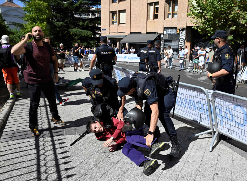 A última etapa da Volta a Espanha foi interrompida por manifestações pró-Palestina, gerando caos e atraso na finalização da competição. Manifestantes derrubaram as barreiras de segurança instaladas no Passeio do Prado, entre a linha de chegada e a Estação de Atocha, invadindo a área destinada aos ciclistas.